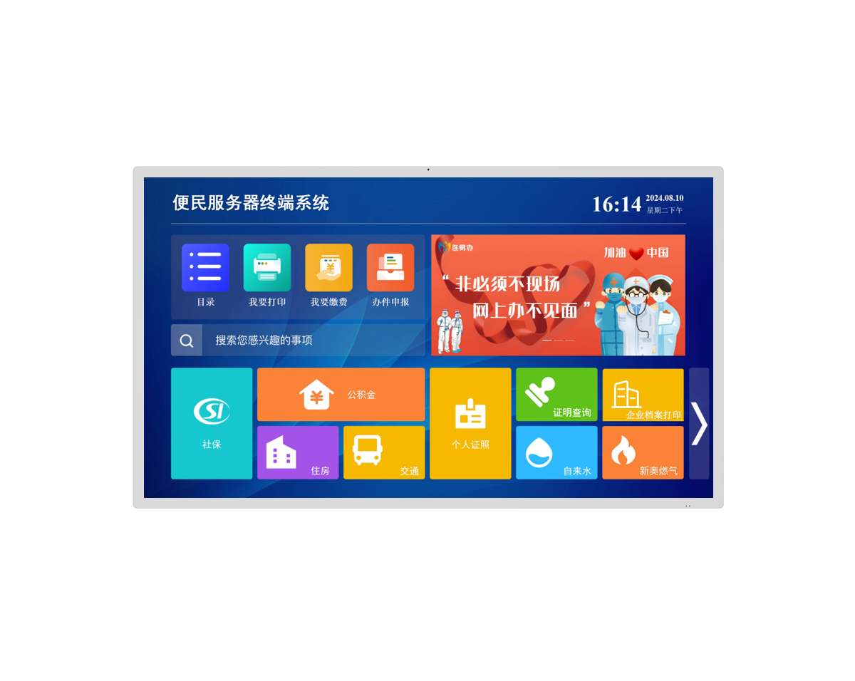 - 使用场景:连锁品牌自助查询、企业宣传查询、政务自助业务、工业控制显示、传媒广告互动等自助查询应用